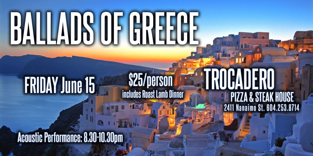 We took the most beautiful Greek Ballads of the last four decades and wrapped in our very own acoustic blanket. Come listen and sing with us, as we present this music in a stripped down format with nylon-stringed guitar, clarinet, flute, sax, upright bass and various hand percussion. Covering a wide range of Greek composers and vocalists from Haris Alexiou to Antonis Remos, Nikos Vertis, Kostantinos Argyros and Antonis Vardis there is a song here for everyone.